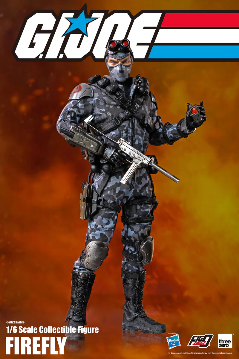 Siguiendo la serie G.I.Joe de Threezero y Hasbro escala 1/6 es COBRA Sabateur Firefly!. Nadie conoce la verdadera identidad de Firefly. Es un experto en explosivos y un piloto consumado que es conocido por hacer el trabajo.