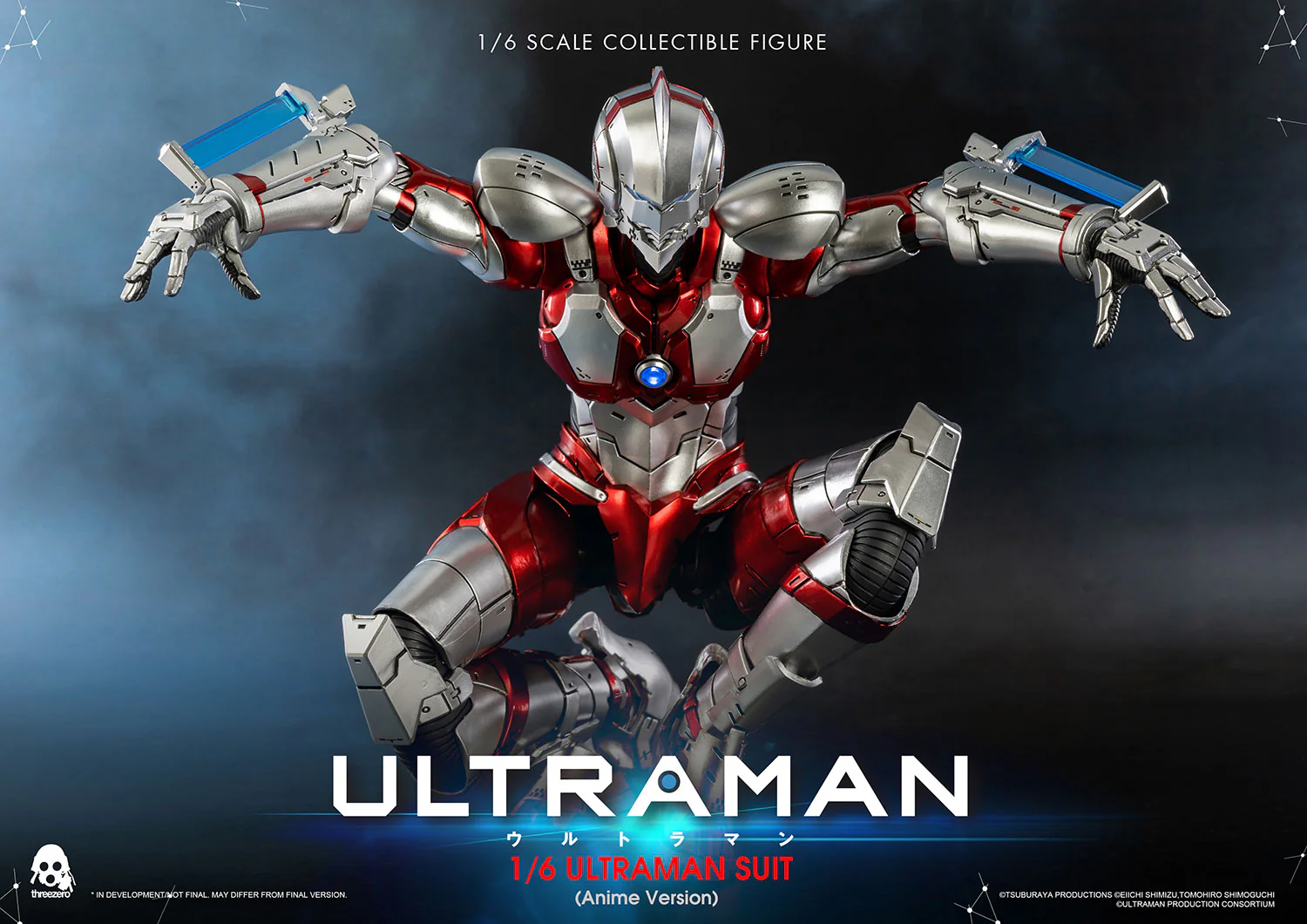 La figura coleccionable Ultraman Suit de escala 1/6, esta basado en el anime Ultraman, mide más de 12 pulgadas de alto y contiene más de 40 puntos de articulación. La figura presenta una aplicación de pintura detallada y luces LED en los ojos, el pecho y Spacium Blades.